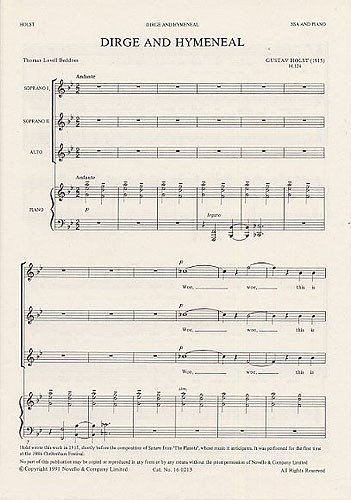 Gustav Holst: Dirge And Hymeneal. Partitions pour SSA, Accompagnement Piano PDF Download